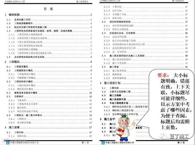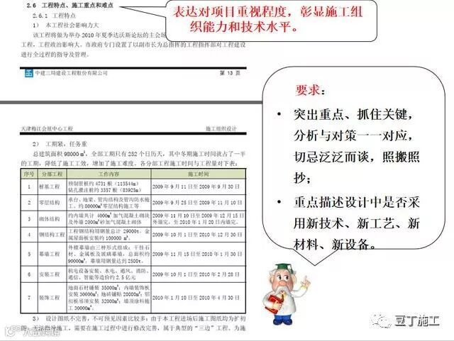 用图形文件、照片辅助文字,要尽可能提高图面的清晰度和绘制质量, 尽量避免漏洞或矛盾。评优施工组织设计忌事后补图。