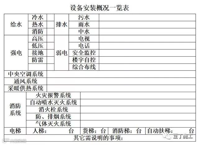 2.4 建筑设备安装概况,表格表示。