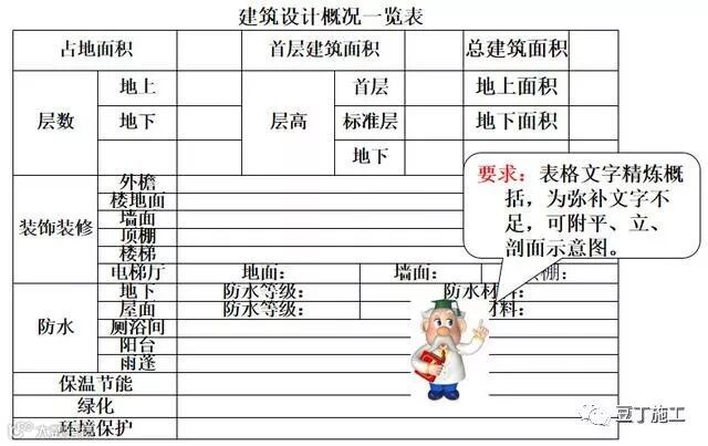 要求:以清晰、简练的方式(图、表格)对整个工程的概况作较为全面的说明。