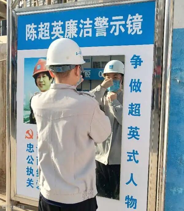 公司纪委结合超英元素,加大防疫知识、复工措施视觉体现的覆盖面。一是确保陈超英廉洁文化建设“2+X”视觉覆盖的总要求,项目部在配置超英先进事迹宣传展板的基础上,增加疫情防控知识展板、条幅等内容,切实加大防疫知识的宣传力度;二是“超英廉洁警示镜”一镜多用,时刻提醒一线员工自身防护要到位,督促管理人员以镜为鉴,正衣冠,促防疫,英姿勃发地投身到复工复产一线中去;三是细化疫情防控监督岗位职责,项目疫情防控监督员加大对防疫复工等关键环节的检查监督力度。