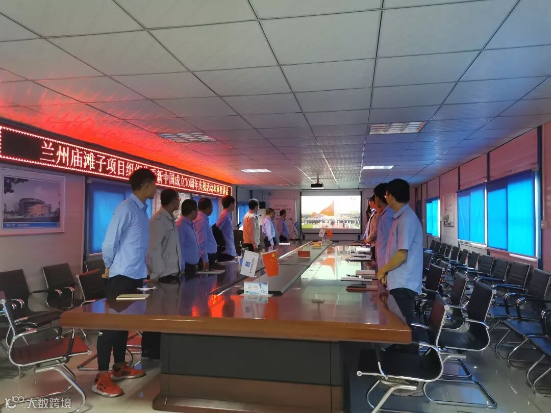 兰州庙滩子项目员工观看国庆阅兵式,全体员工同唱国歌