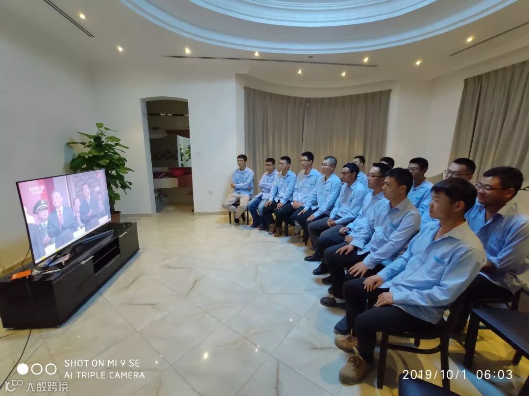 富查伊拉项目部中外籍全体员工集中观看70周年大阅兵,庆祝祖国70华诞!