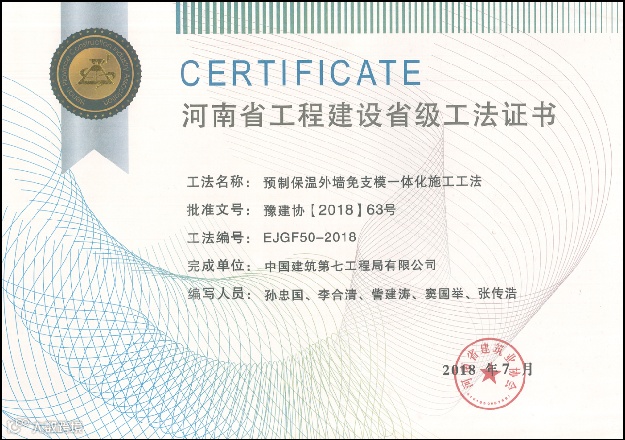 被评为2018年河南省工法