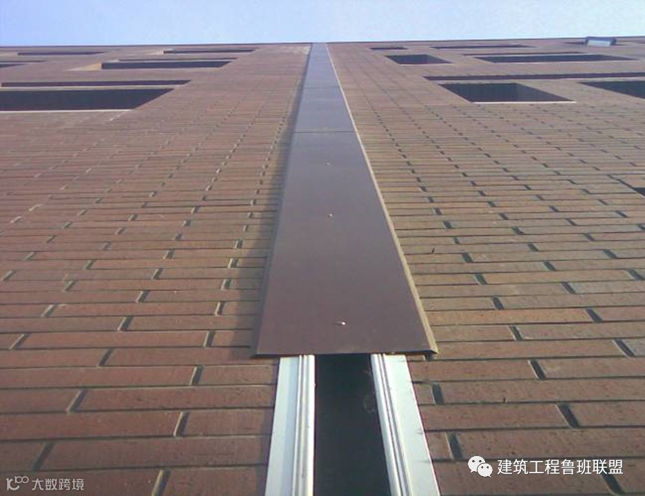 首先从外墙立面伸缩缝开始,选用内滑撑的方式来抵抗变形拉伸,具体做法为将伸缩缝两侧用带滑槽的型材固定,用来安装中间可活动滑撑,面板不与墙体两端刚性连接固定,而是与可活动滑撑连接,这样既保证防水,又保证伸缩缝两端变形的影响。