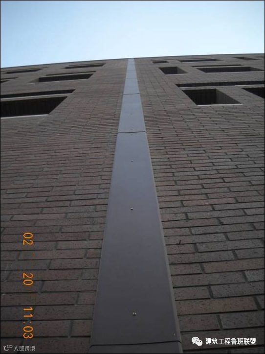外墙立面不存在积水现象,因此采用两道防水:内部粘贴防水布,外扣防水面板的方式进行防水。