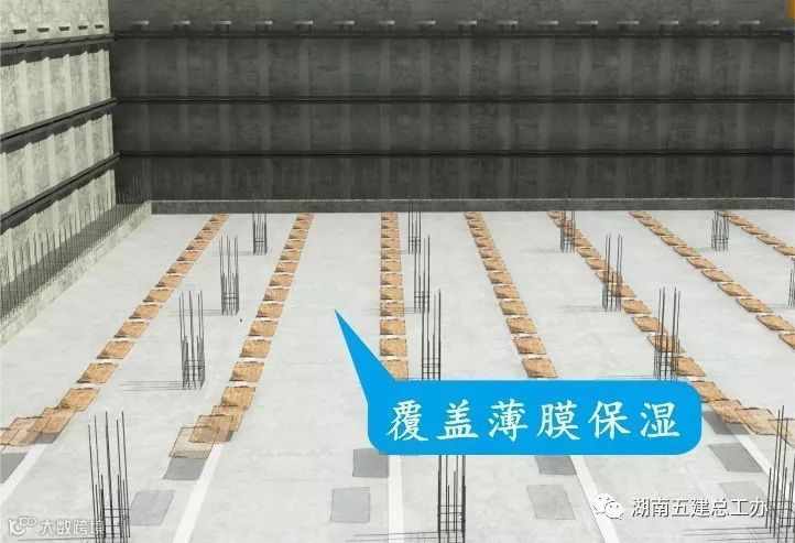 地下室外墙混凝土浇筑后带模养护不应少于2天,拆模后应采用多层保水性强的材料覆盖养护3—4天,之后继续洒水养护,有效养护总时间不得少于14天。