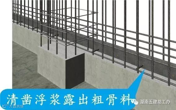 后浇带施工缝浇筑混凝土前,应将其表面浮浆和杂物清除,并凿到密实混凝土,再铺设去粗骨料水泥砂浆。浇筑混凝土时,先浇水湿润,再及时浇灌混凝土,并振捣密实。