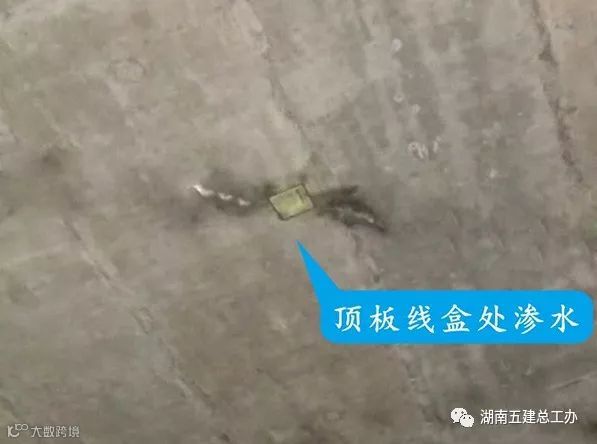 表现形式:地下室顶板线盒或线管处渗水。