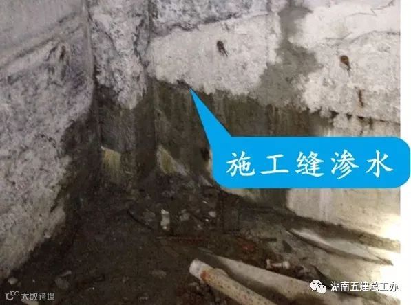形成原因:地下室分仓过大或变形缝、施工缝部位设置不合理,施工缝界面处理马虎或带压力水浇筑。