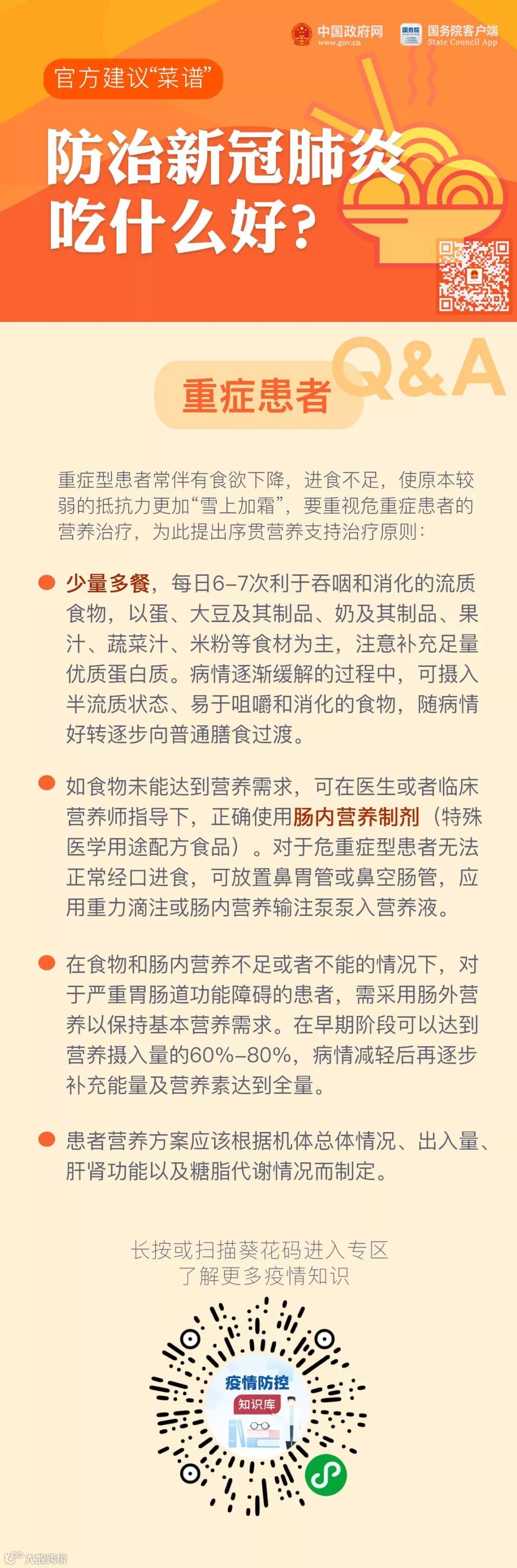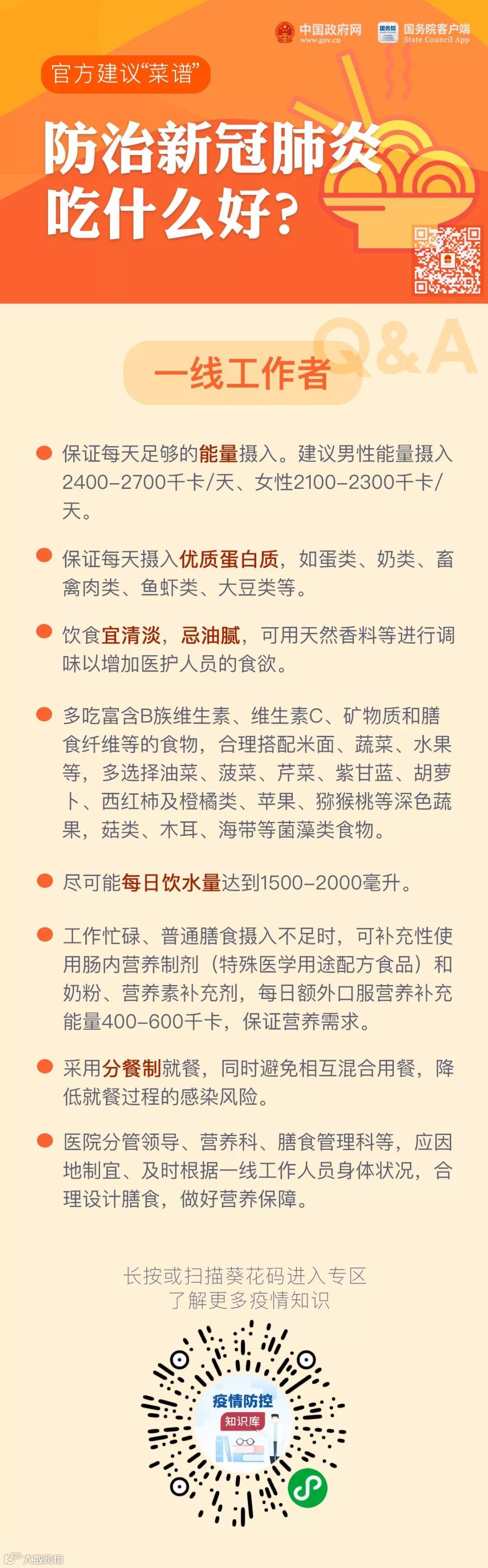 科学合理的营养膳食能有效改善营养状况、增强抵抗力,有助于新型冠状病毒肺炎防控与救治。国家卫健委日前发布《新型冠状病毒感染的肺炎防治营养膳食指导》。我们一起营养膳食,抗击病毒!