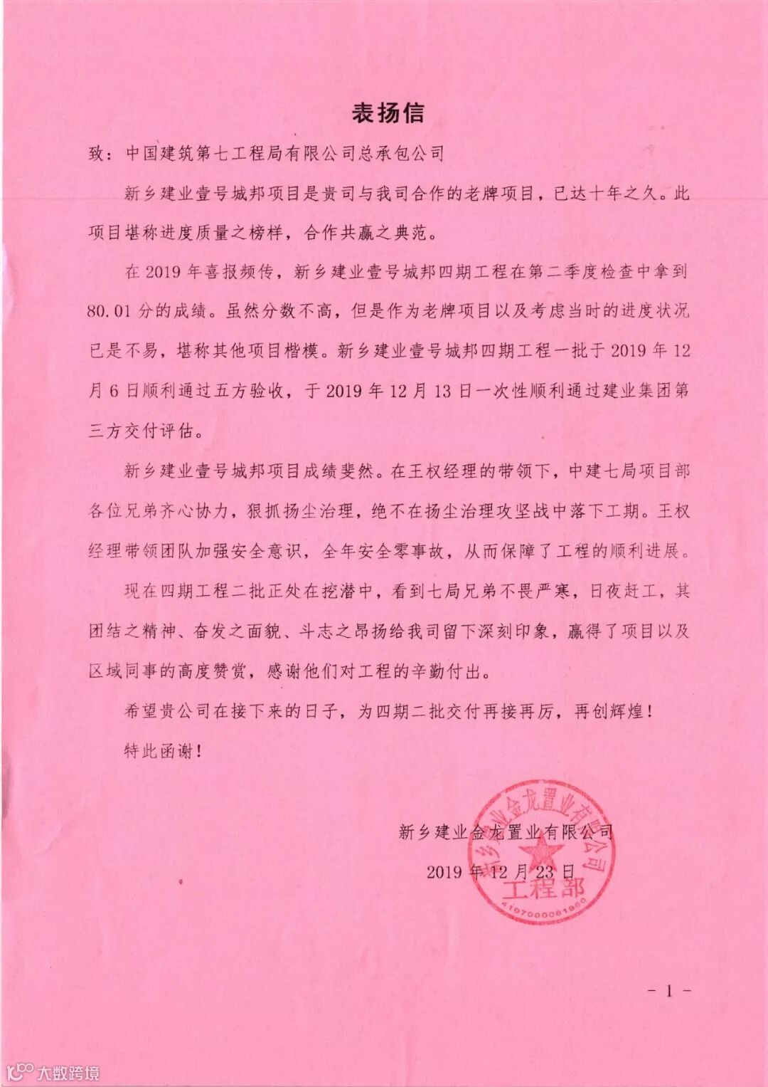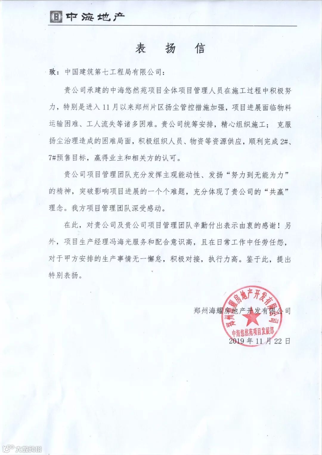 2019年的最后一个月,中原分公司又陆续收到了7封表扬信,累计收到表扬信49封。