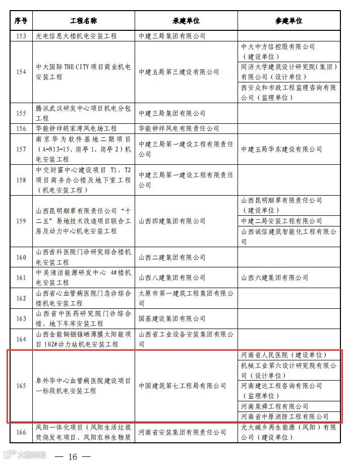 2019年郑大一附院郑东新区医院项目荣获“国家优质工程金奖”,实现了河南省国优金奖“零的突破”。