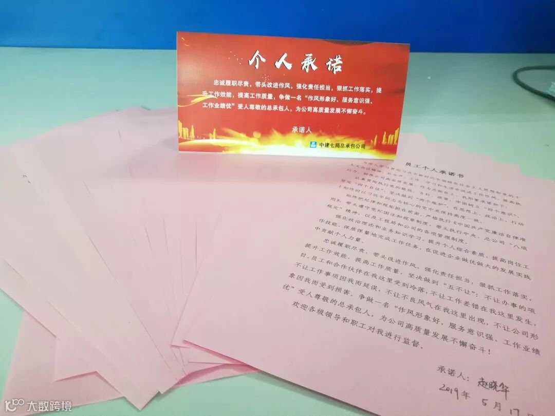 “忠诚履职尽责,带头改进作风,强化责任担当,狠抓工作落实,提升工作效能,提高工作质量,争做一名“作风形象好,服务意识强、工作业绩优”受人尊敬的总承包人,为公司高质量发展不懈奋斗。”——为了确保主题活动切实有效地开展,会上,李向阳带领全体与会人员作出了庄严承诺,各分管领导将印有五个“绝不让”(不让办事的项目、员工和合作伙伴在我这里受到冷落,不让工作差错在我这里发生,不让工作事项因我而延误,不让不良风气在我这里出现,不让公司形象因我而受到损害)的承诺卡发放到各系统员工手中。会议期间,全体与会人员,还在个人承诺书上认真的签下了自己的名字。