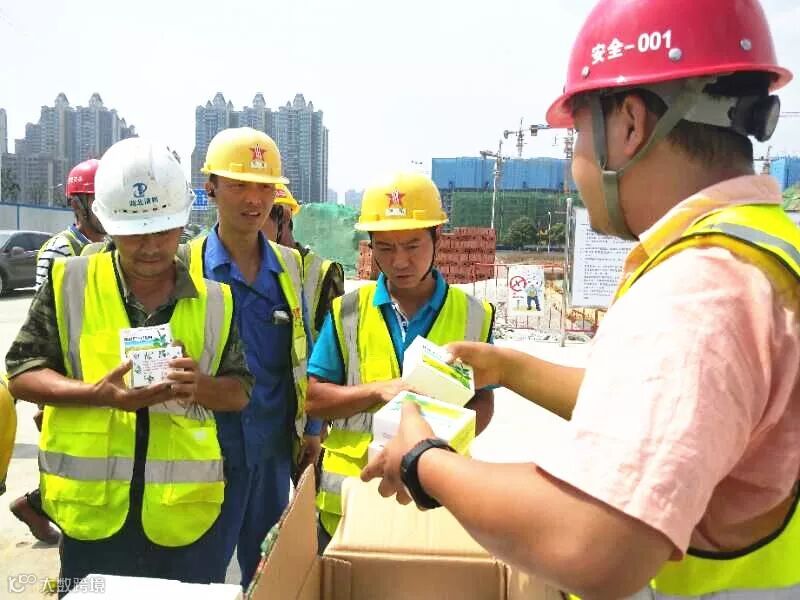 另外,长沙绿地项目还不定时地开展送清凉活动,有至少400多名劳务工人领到了项目部为他们准备的西瓜、矿泉水、凉茶、人丹、藿香正气水、清凉油、风油精等降暑食品及药品。