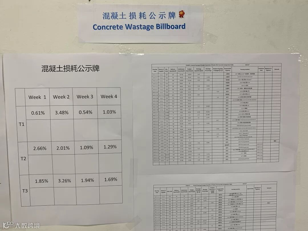 根据迪拜实际施工环境,将整个项目划分为三个独立区域,每栋楼都有项目经理和责任工程师,楼号之间既合作也竞争,在办公室入口处张贴钢筋和混凝土损耗公示牌,定期公示三栋楼的钢筋和混凝土损耗量并作对比分析,这样做既节约了钢筋和混凝土用量,也提升了整个项目人员现场管控和计划管理能力,由要我做向我要做观念转变,充分激发员工潜力。