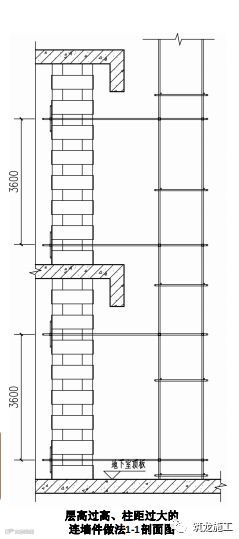 1. 此构造用于建筑物柱距较大、层高≥5 m等,连墙件设置不能满足两步三跨要求的情况。
