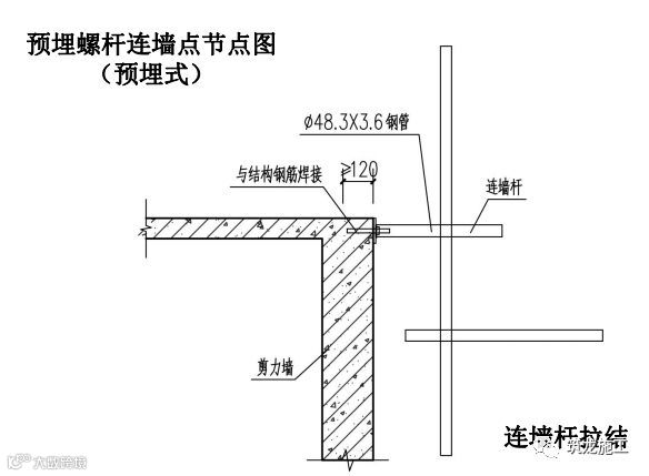 1. 外架连墙件分为两种:预埋式和穿墙式。
