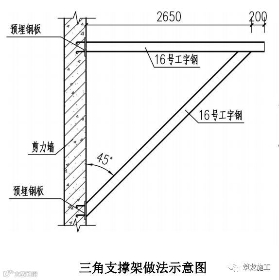 2. 搭设抛撑时,抛撑采用通长杆并采用旋转扣件固定在脚手架上,与地面的倾斜度为45°~60°。