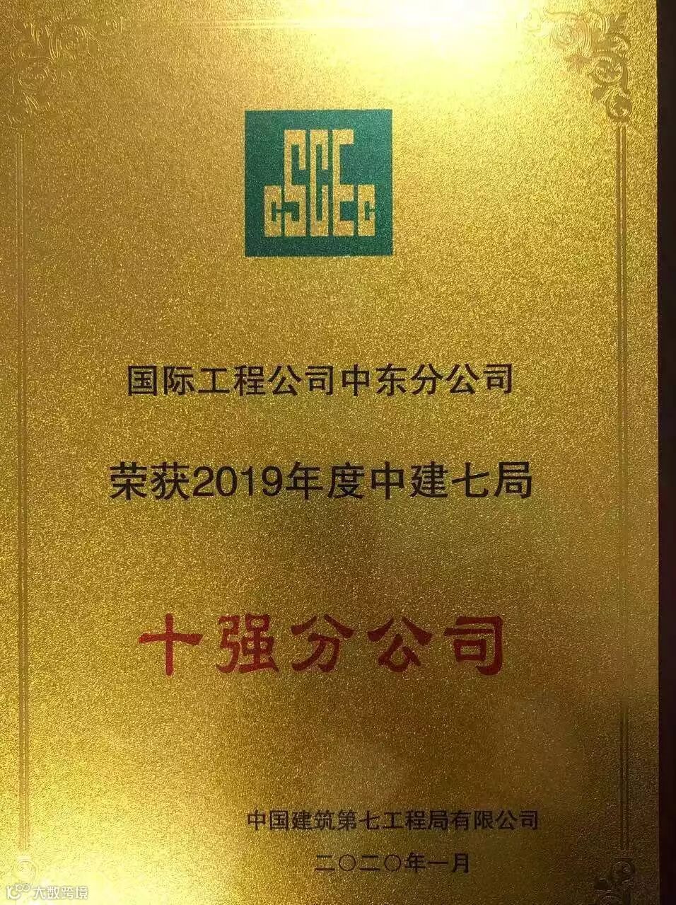 位居中建直营10强第7名