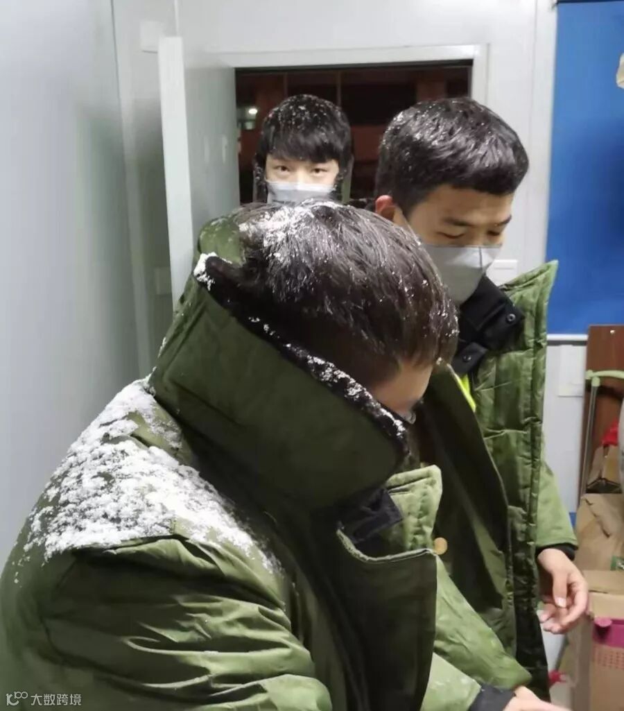和他一样值夜班的还有刘守博、贾颖慧,每天夜里,他们都要战胜寒冷和困意,无数次往返现场,只为能第一时间保障现场工友的需求。