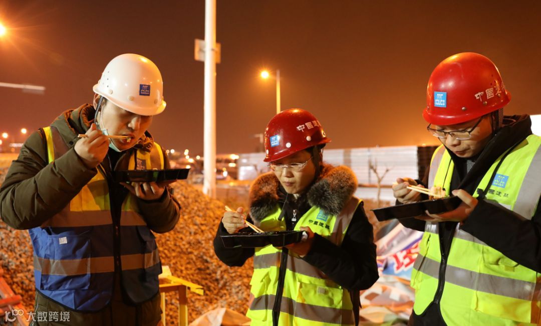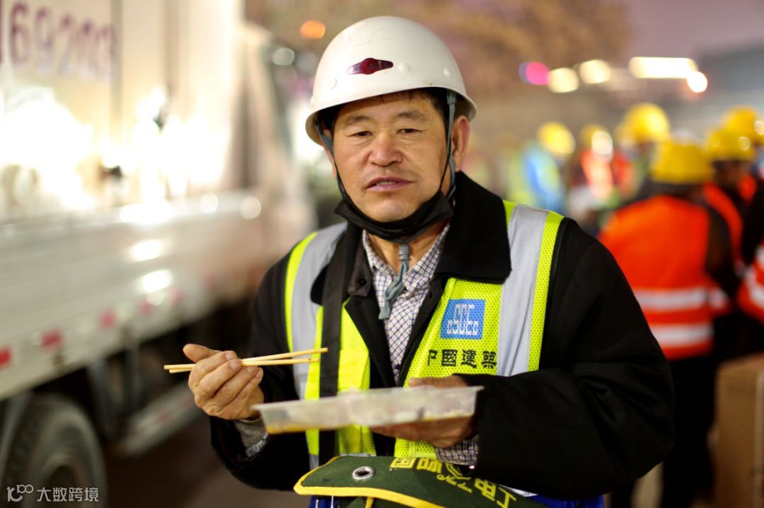 刚吃完夜班餐的建设者