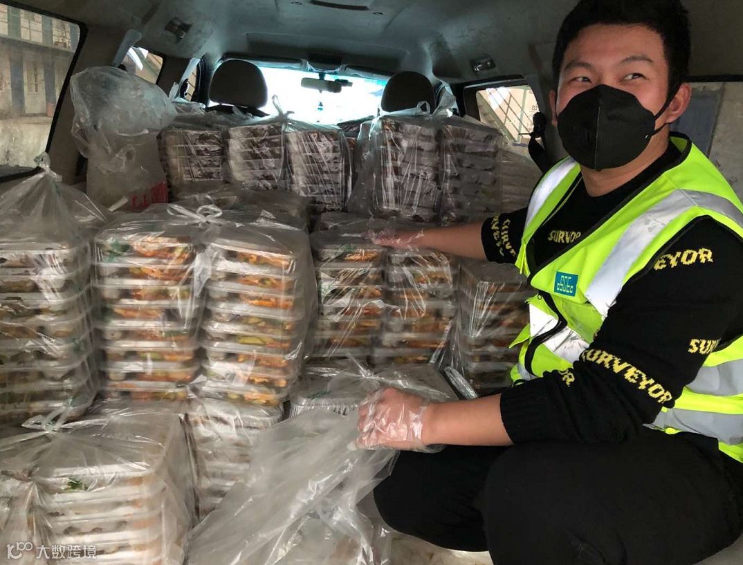 冒着热气的盒饭被送到现场
