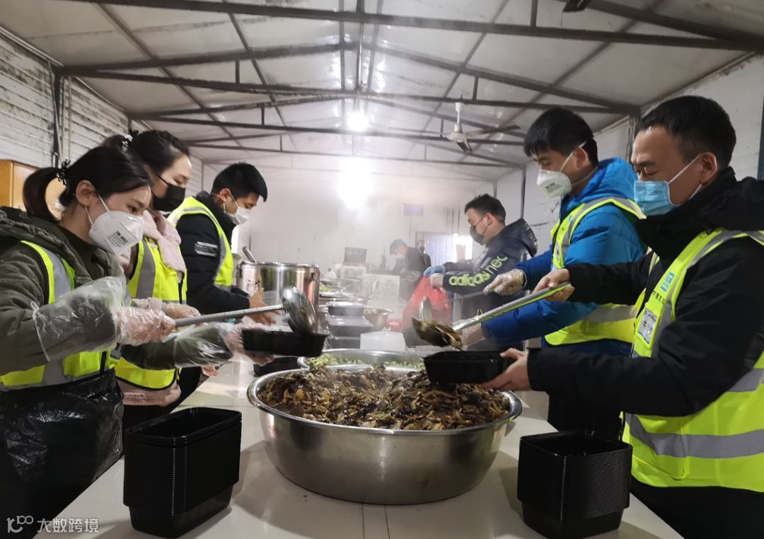 人员高峰的时候,一顿饭要准备1200多人的盒饭。天气寒冷,为了让现场的同事们吃上热乎饭,牛团结、吕科健、徐昊、董梦楠、宋亚会、张丙辰、姚鹏程齐上阵负责每天盒饭的分装、运送。