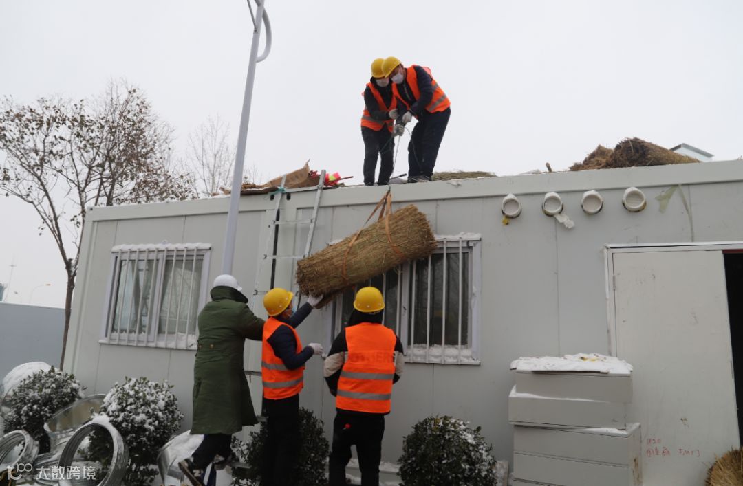 2月5日,一场大雪不期而至,给屋面安装带来了很多不便。在汪轩的组织下,他们先在屋面铺上一层草垫,防止工人滑到,熊壮、魏峰、梁军朋、叶长城分区到屋面边沿处坚守提醒。