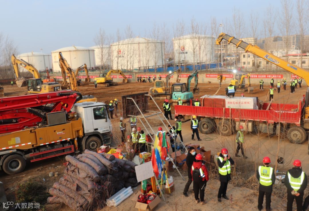紧接着,挖掘机进场,人员进场,开始紧张的施工。1月27日,总承包公司提前一天完成了5000多平米的土地平整。