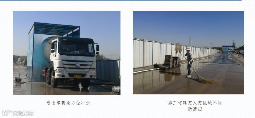 在施工现场的各出入口均安装全封闭车辆冲洗设施,并安装监控闸机设备,确保进出车辆100%冲洗。在土方开挖、回填施工过程中,采取淋水、冲洗等措施防止车辆带泥上路。同时,运输建筑材料、垃圾和泥土等车辆,在驶出施工现场之前冲洗,车辆产生的泥浆水通过三级沉淀池达到排放标准后,再排入公共管网。沉淀池安排专人进行定期清理。