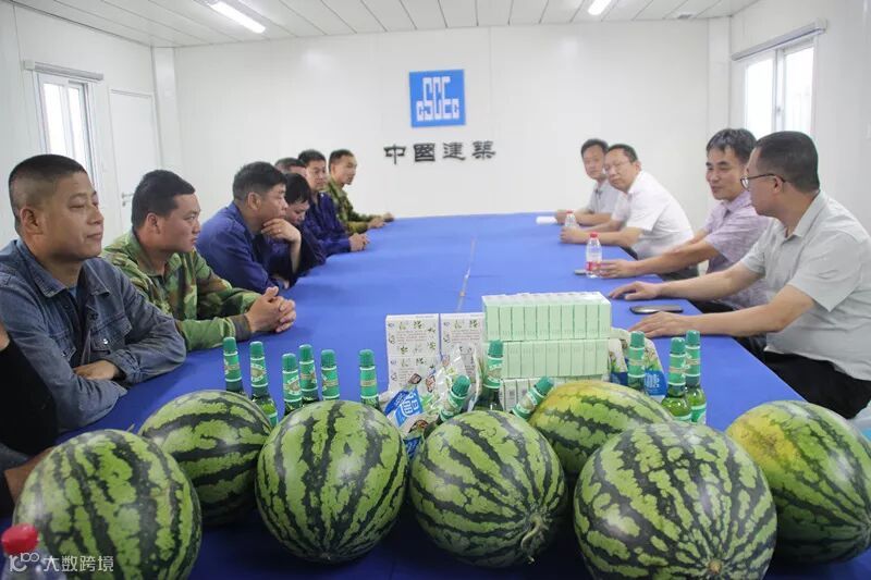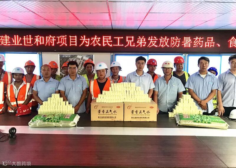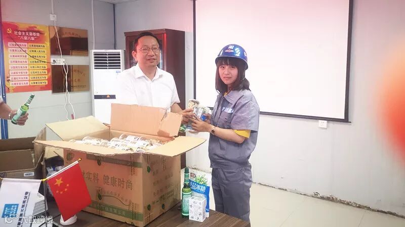 项目部为工友发放花露水、盐汽水、板蓝根及其他防暑药品,并表示此次送清凉活动只是一个开始,后续将会持续组织更大型的送清凉的活动。