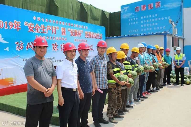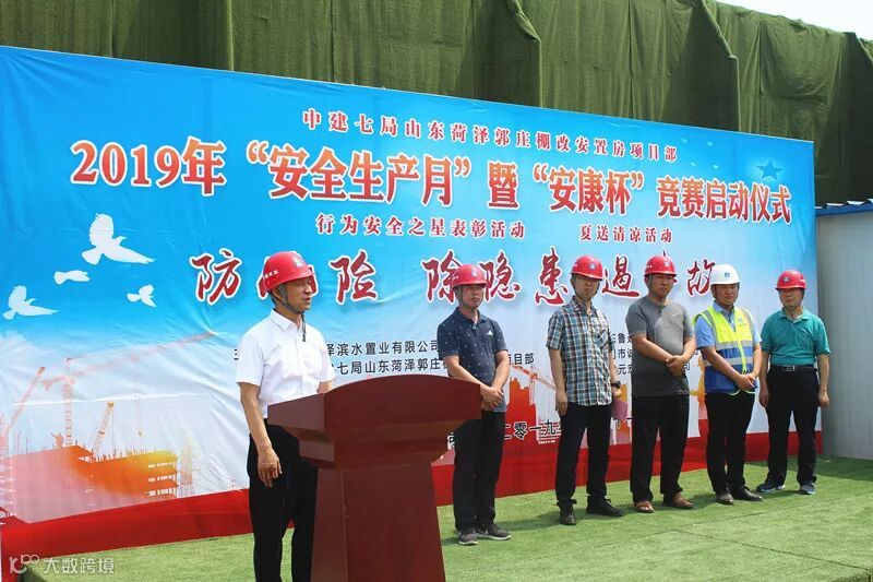 菏泽郭庄棚户区改造项目部举办安全生产月活动启动仪式暨行为安全之星表彰活动、夏送清凉活动。总承包公司调研员张新出席并讲话。当天,项目部还为工友朋友们送上了西瓜、清凉油、防暑药品等慰问品,在这炎炎夏日为工友们送上一份清凉。