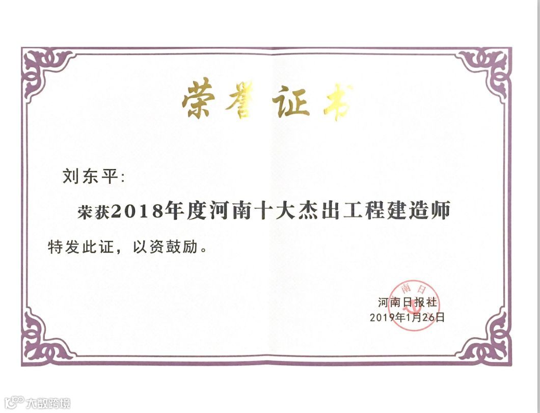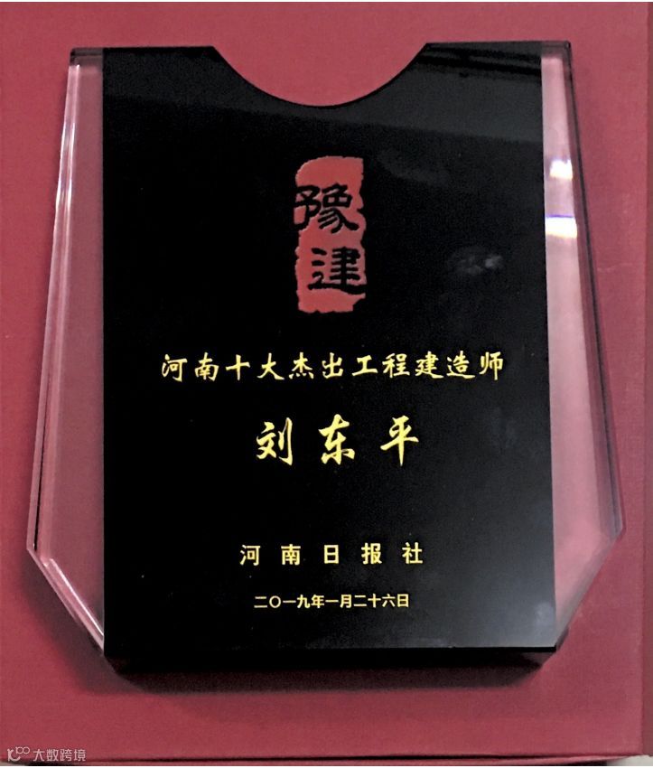 刘东平(左二)被授予“河南十大杰出工程建造师”荣誉称号