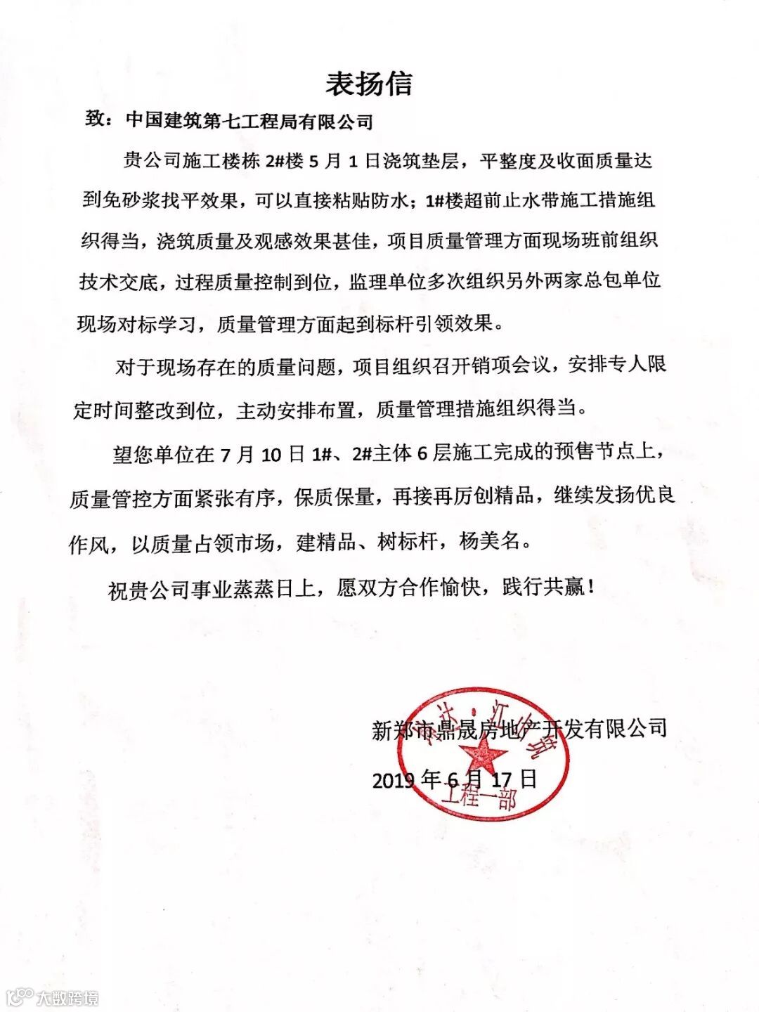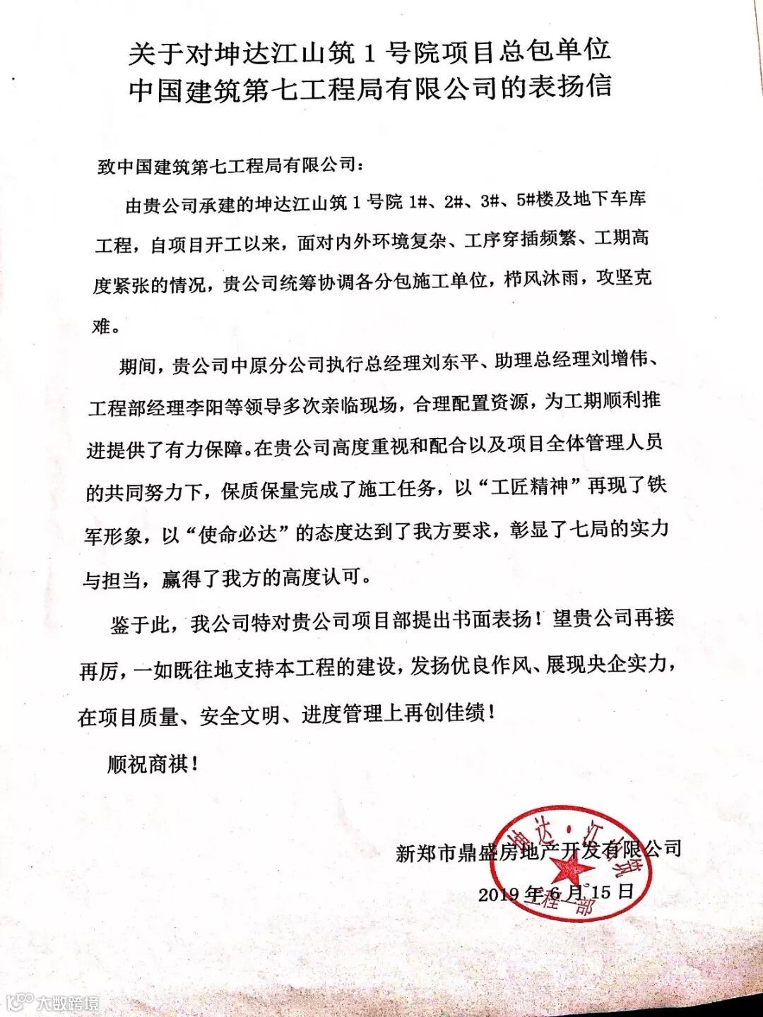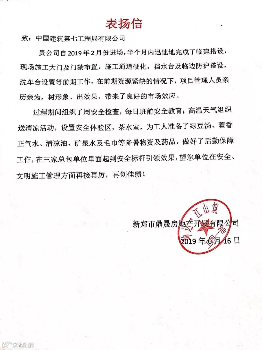 (项目部收到的表扬信)