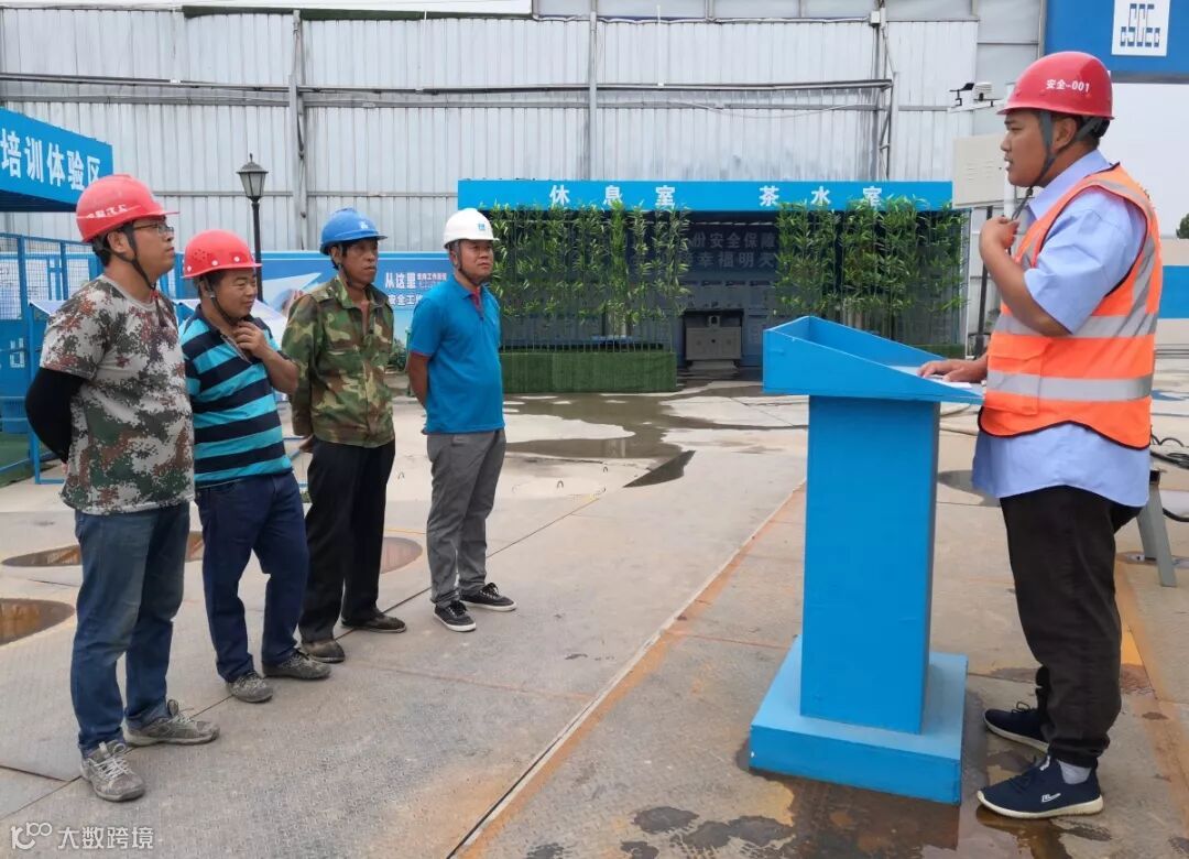 (在安全体验区对工人进行安全教育)