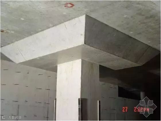 施工缝处理:墙、柱水平施工缝在墙、柱边线内再弹一道切割线,用无齿锯切割,切割深度3cm。柱、墙上顶水平施工缝按标高线往上5mm再弹一道切割线,进行切割。下图为框架柱柱头和柱根部处理