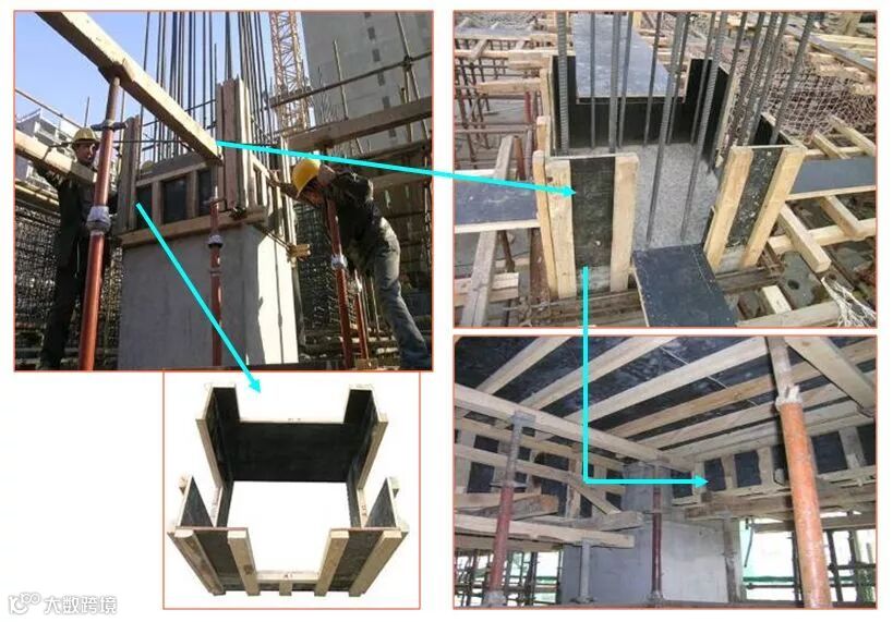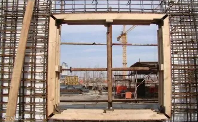 窗口支撑:木材宜采用不易变形的红白松,模板阴角和阳角用角钢与木模固定,同时洞口模板内加支撑。浇注混凝土时从窗两侧同时浇筑,避免窗模偏位。