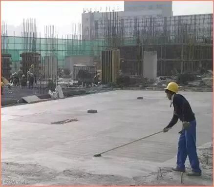 楼板混凝土浇筑:混凝土初凝前用2m刮杠沿四周墙的墙根处向中间刮平,再用压光机压实。终凝前用木摸子搓平,再用铁摸子压实2-3遍,表面塑料条帚扫毛。