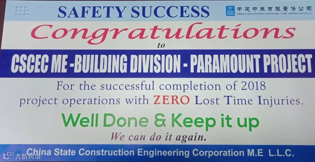 3月24日,从迪拜派拉蒙项目传来喜讯,该项目荣获由中建中东公司颁发的“2018全年无失时工伤”奖,奖金5000迪拉姆(约合人民币9145元),这也是该项目继获“两百万工时无安全事故”奖之后的又一荣誉。2018年度,中东公司仅有三个项目获此殊荣。