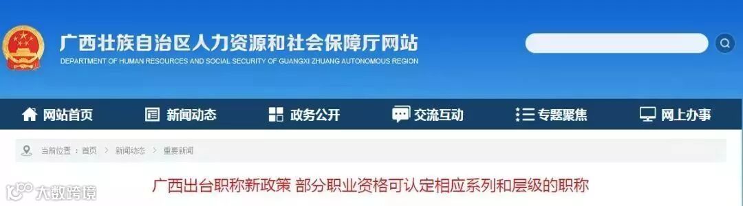 广西人社厅印发《关于在部分职业领域建立职称与专业技术类职业资格对应关系的通知》: