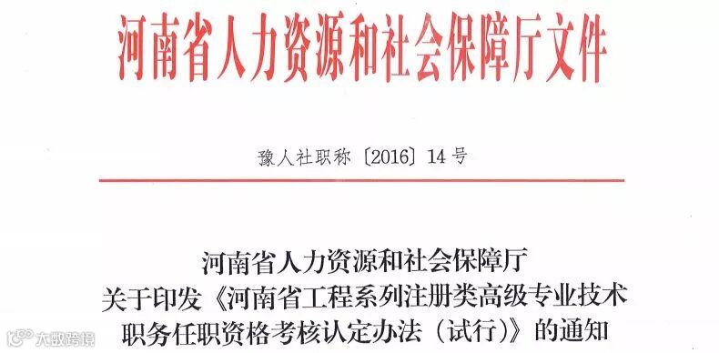 2016年,《河南省工程系列注册类高级专业技术职务任职资格考核认定办法(试行)》明确:
