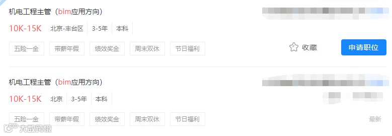 随便在某招聘网站搜索框内输入BIM,就可以看到很多相关职位的招聘信息: