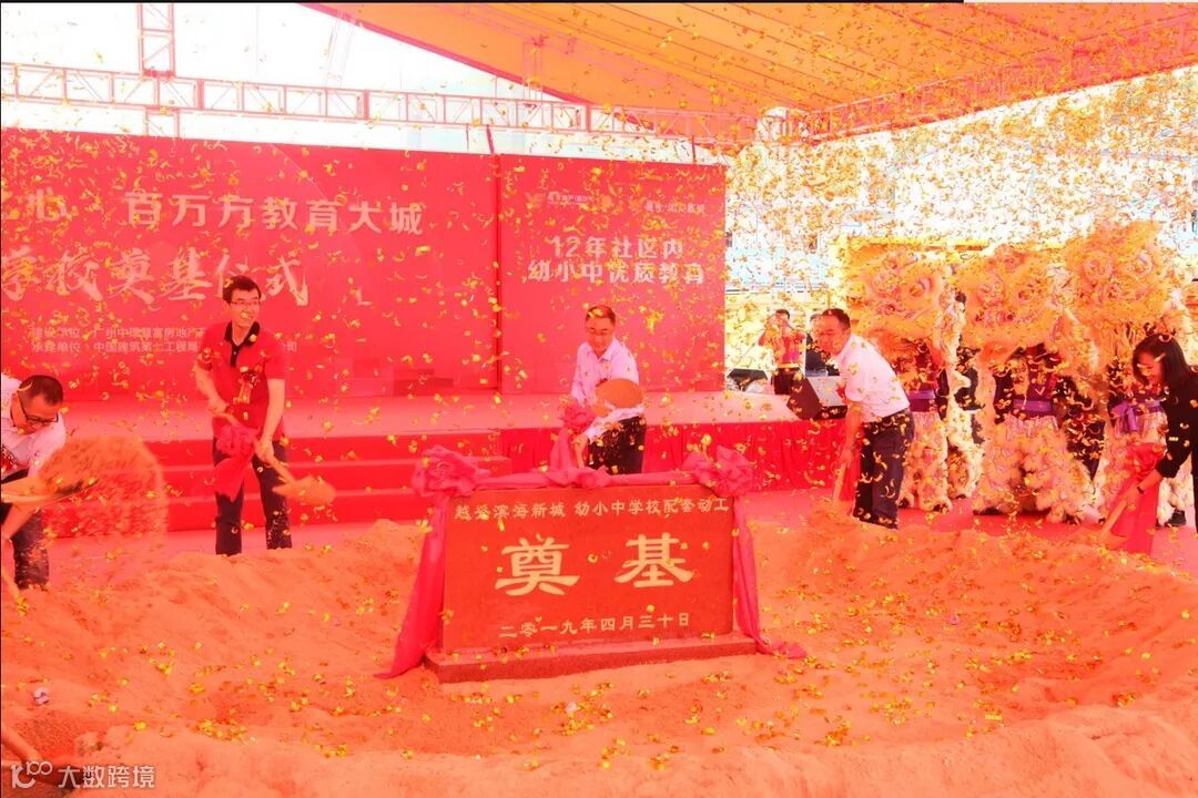 4月30日下午,由越秀地产南沙公司主办,总承包公司南沙滨海花园十期三区项目部(以下简称滨海花园项目)协办,主题为“湾区之心,百万方教育大城”的学校奠基仪式在滨海花园项目举行。越秀地产南沙公司总经理徐琦、南沙事业部总经理沈航健、滨海花园项目副总经理陈峰,总承包公司华中分公司党总支副书记、执行总经理师磊,副总经理李淑强等出席了奠基仪式。