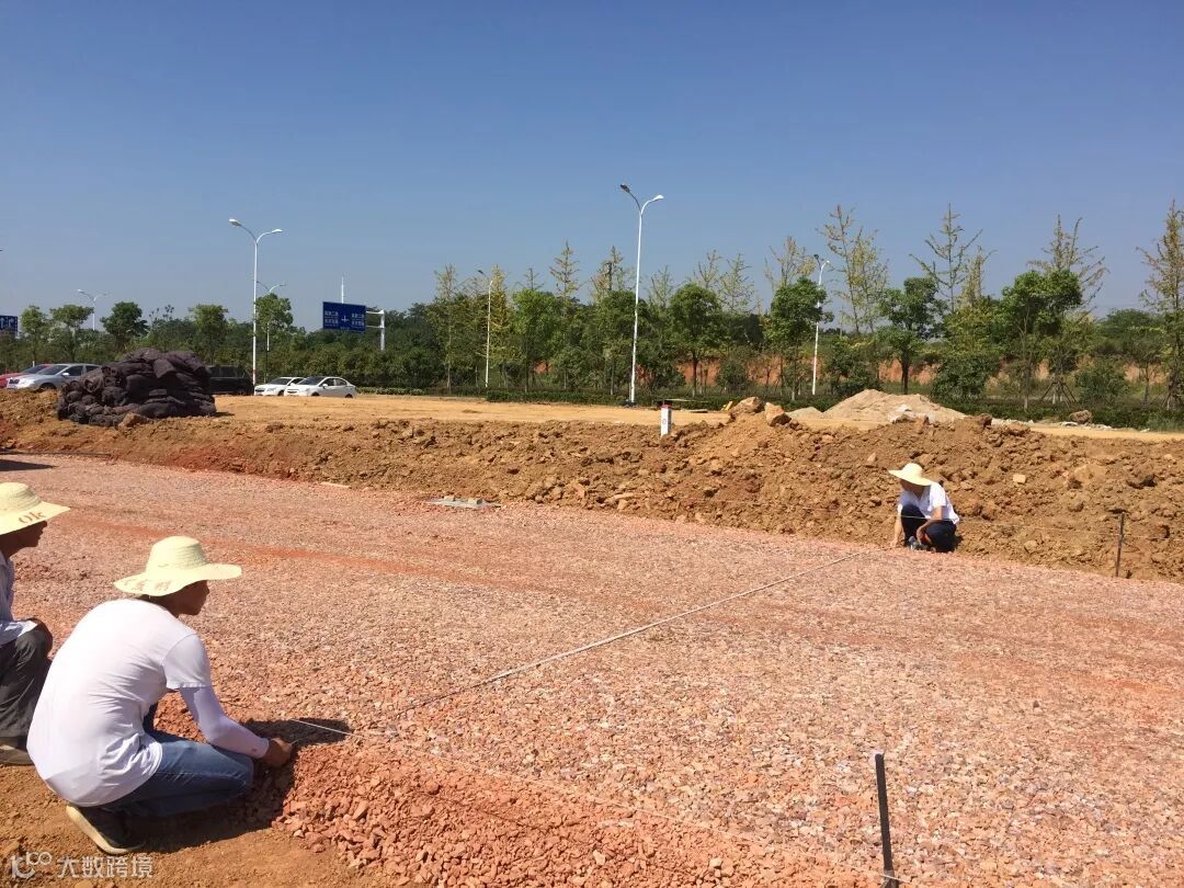 施工人员在烈日下测量路基