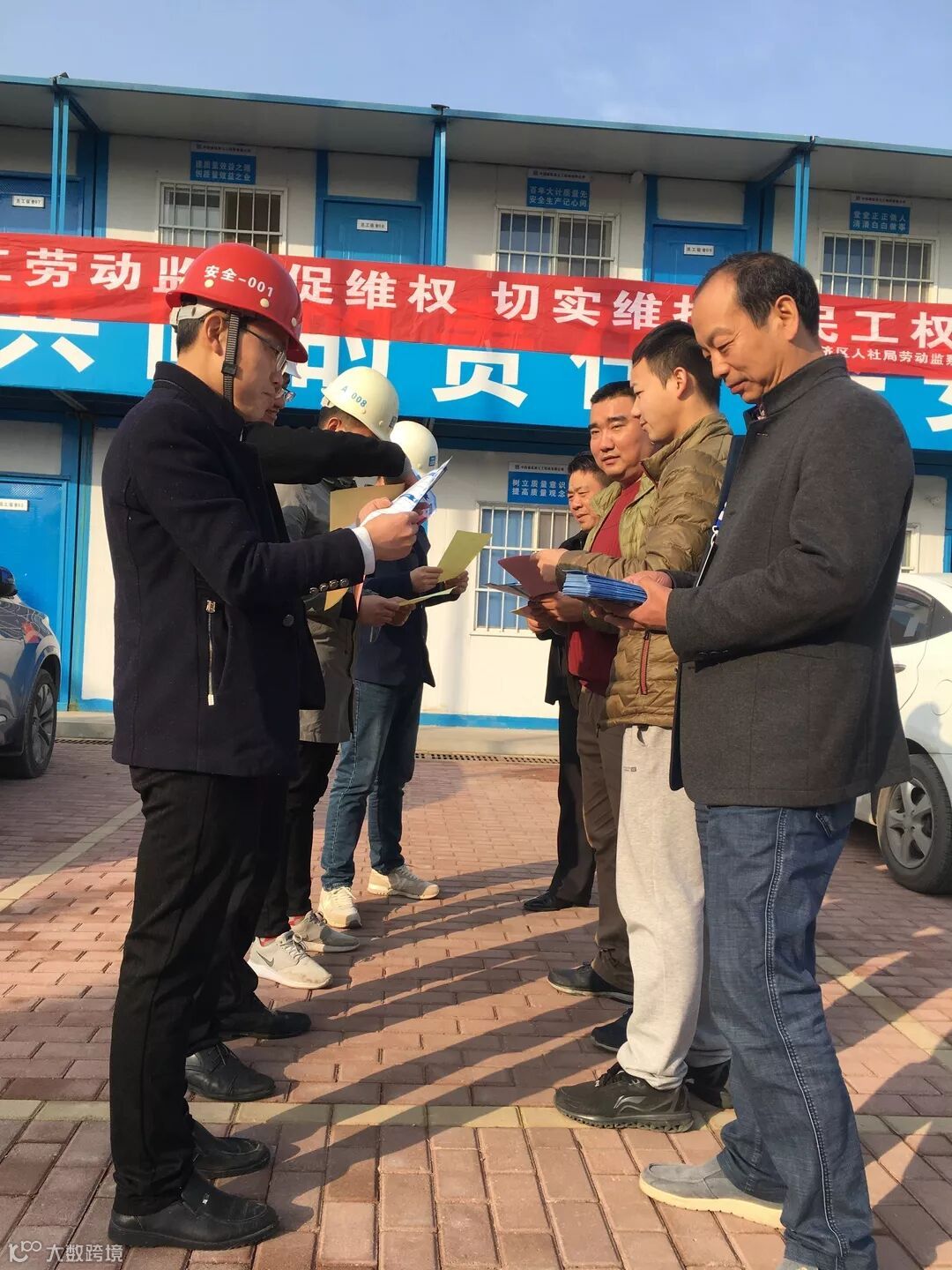 活动中,工作人员通过发放宣传页和召开座谈会的形式,向项目管理人员、劳务人员宣讲了《劳动合同法》的相关知识点,重点讲解了同工同酬等工资分配方面的知识,获得了在场人员的欢迎。
