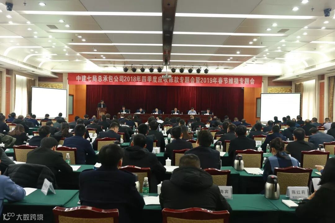 为全面部署公司2018年末“两金”压降及2019年春节维稳专项工作,12月8日下午,公司在郑州召开了2018年四季度应收账款专题会暨2019年春节维稳专题会,公司党委书记、董事长苏方毅,总会计师、工会主席王修钰,副总经理、总经济师万志欣,副总经理、华中分公司经理李灿,公司商务部、财务部、资金部、法律事务部、清欠管理部等相关部门负责人,各分公司经理、总会计师、总经济师,各项目经理、商务经理、财务人员共计180余人参会。