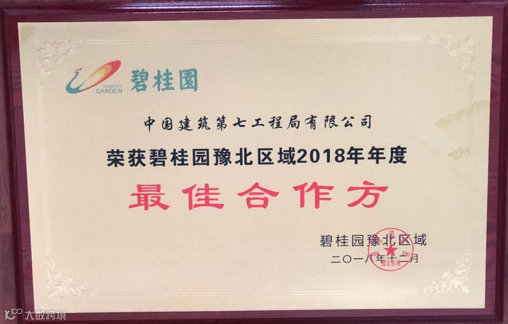 近日,公司濮阳碧桂园项目的项目经理李宏胜喜滋滋地抱着一块奖牌从业主方回到了项目部。原来,这块金光闪闪的奖牌,是由碧桂园豫北区域颁发的,濮阳碧桂园项目部作为中建七局的施工代表,被评为碧桂园豫北区域2018年年度最佳合作方。