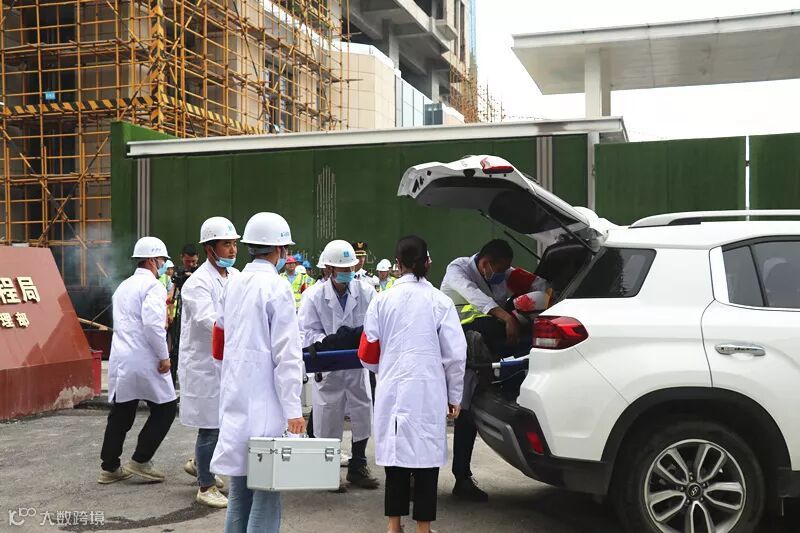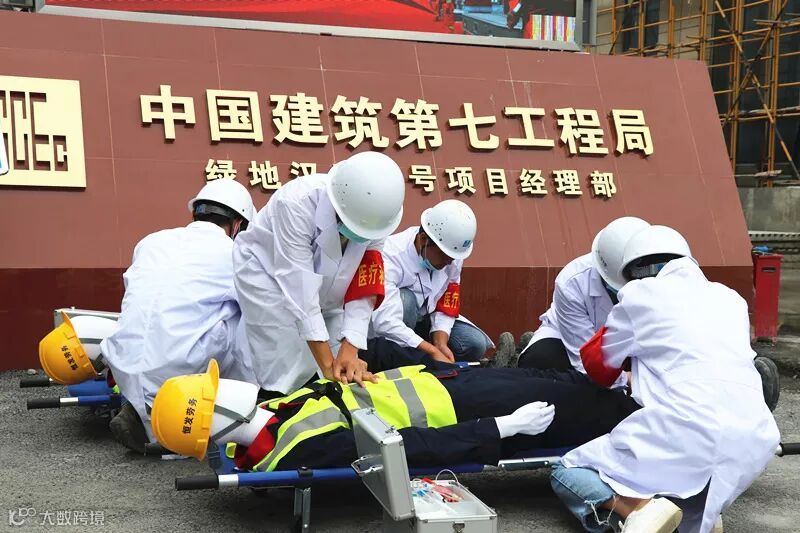 此次综合性应急演练,绿地汉口一号项目部精心部署,全员备战,共分为6个应急小组和1个120急救中心小组,在项目经理陈雨庆的指挥下对火灾、高空坠落、触电等三起安全事故进行了紧张、有序、全面的救援演练。