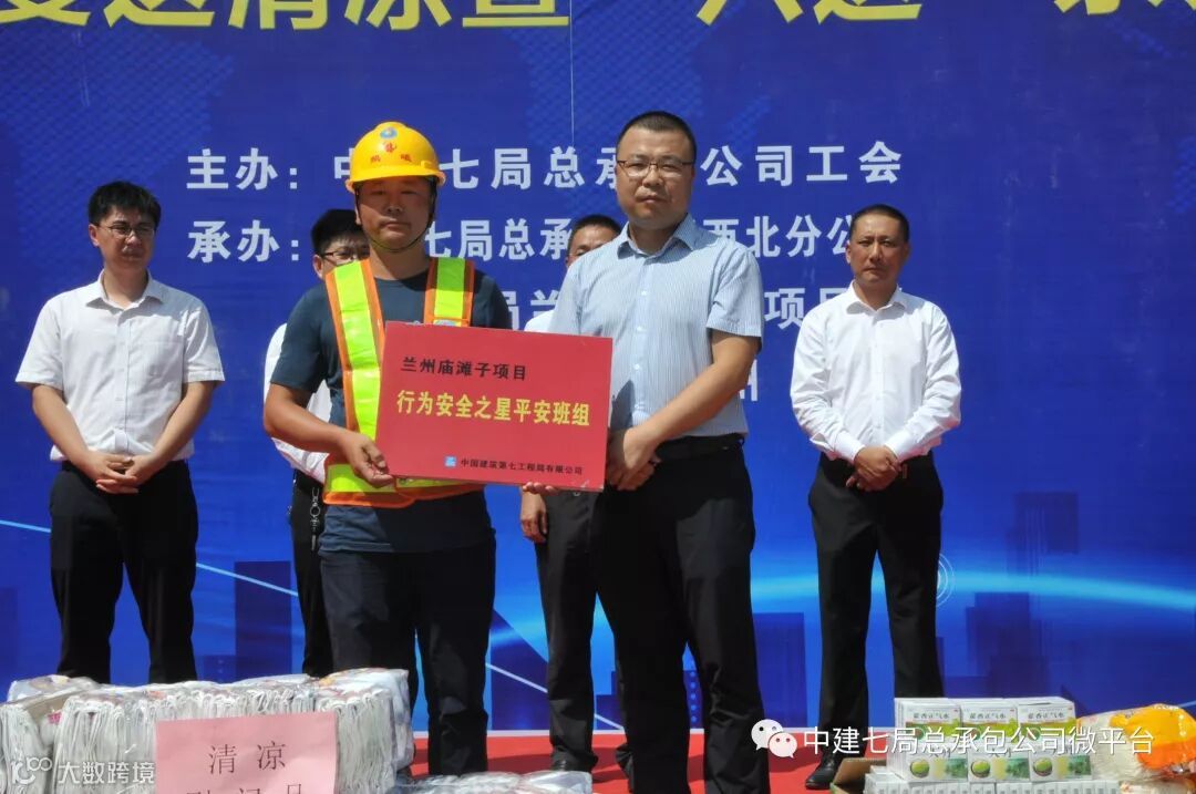作为公司工会夏送清凉暨“六送”系列活动的第四站,兰州庙滩子项目位于西北偏远地区,作为古代丝绸之路上重要枢纽,同时也是“一带一路”的“黄金”段。为响应国家号召、彰显央企社会责任、保障工程建设平安运营,公司领导为农民工带来了西瓜、绿豆、药品、手套等防暑降温和劳保慰问品。活动中,王修钰为项目“职工书屋”授牌、为项目钢筋工“技术能手”颁奖,王欣为项目“行为安全之星平安班组”授牌。活动期间来自兰州大学第一附属医院的医生和爱心义务理发的师傅们来到项目,为项目工友进行爱心义诊和免费理发活动。
