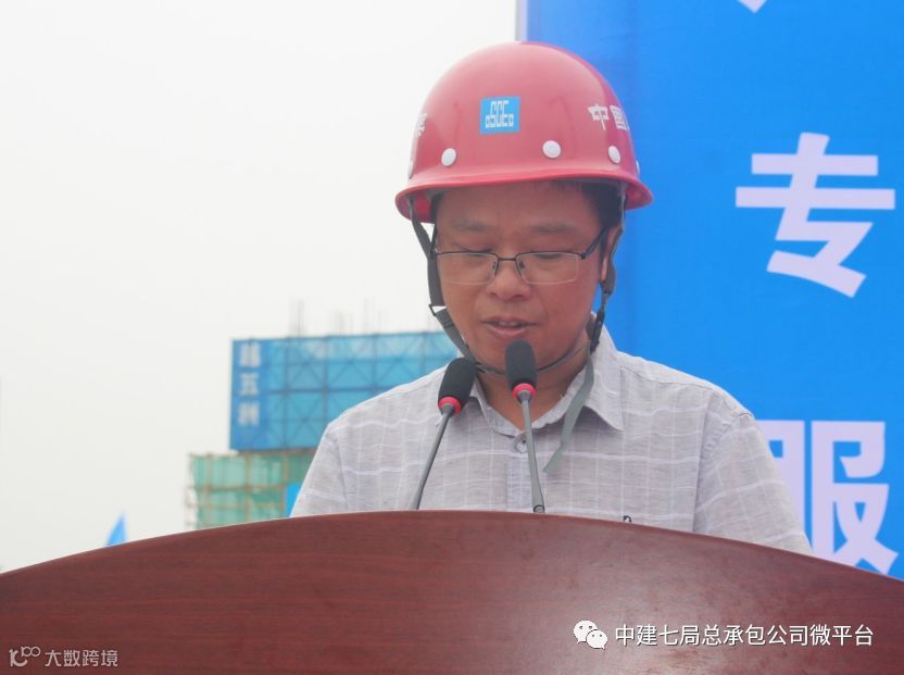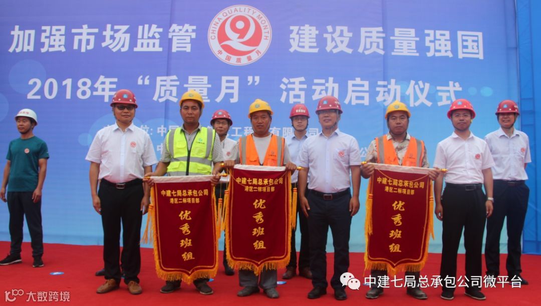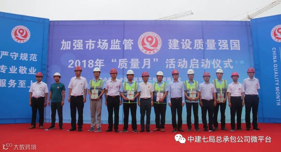 仪式上,田振涛首先致欢迎辞。随后,局科技部副总经理张建新宣读了《中建七局有限公司2018年“质量月”实施方案》,明确了“加强市场监管,建设质量强国”的活动主题,确定了“质量月”期间将开展学习培训及系列活动的内容等。